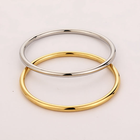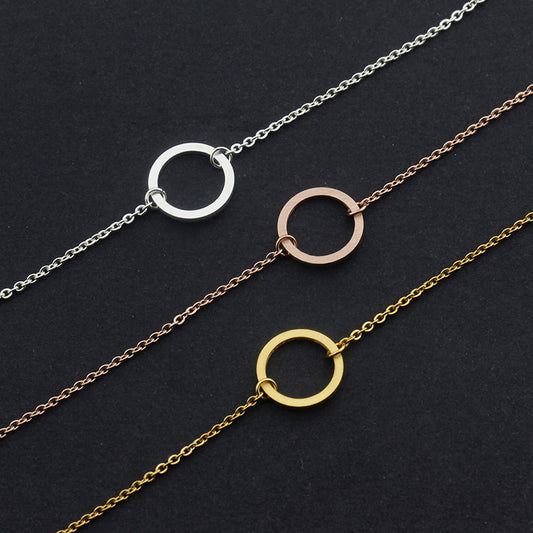 Bracelet simple et rond en acier inoxydable avec anneau de vie minimaliste