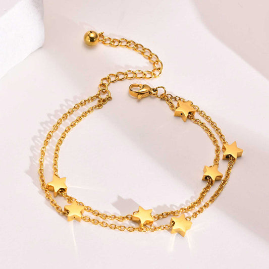 Bracelet avec pendentif en forme d'étoile de mer et coquillage, en acier inoxydable