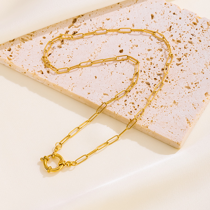 Collier pendentif à fermoir à ressort tendance en acier inoxydable galvanisé or 18 carats, chaîne de clavicule de luxe légère et polyvalente