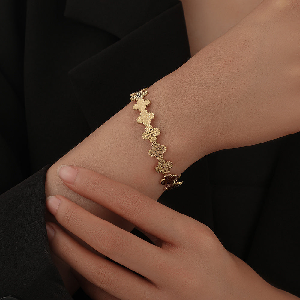 Geometric Embossed Stitching Stainless Steel Bracelet